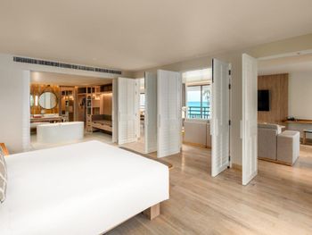 классное расположение. пляж в этом месте отличный. но номера… отель 3 звёзды лет 15 назад. очень состаренный отель. убирались очень средне. завтраки не соответствует цене. 450 евро за номер без вида на море.. до этого были в The Shor, на 50-100 евро дороже, но там реально классно, стильно