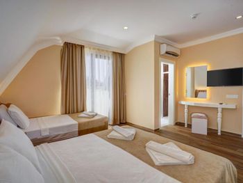 У отеля удачное расположение, прямо в центре Алании, в минуте ходьбы от пляжа Клеопатра. Номера чистые, после ремонта, все работало исправно. Включены только завтраки, но в самом отеле есть ресторан, где за доп.оплату можно пообедать или поужинать или просто выпить кофе. Недалеко находятся магазины, рестораны, кафе. Если ещё раз будем отдыхать в Алании, то снова выберем этот отель.