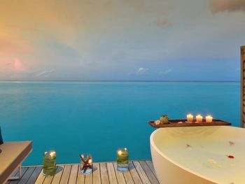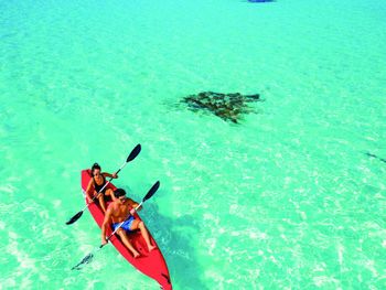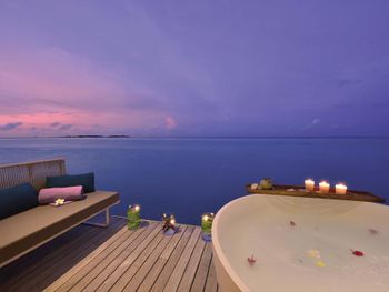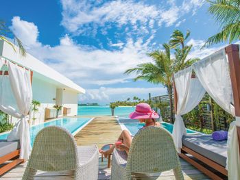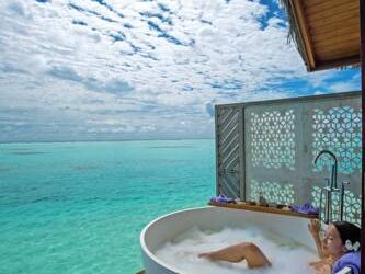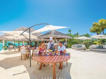 В комплекс услуг «Все включено — РОСКОШЬ» входит бесплатный трансфер от/до аэропорта на роскошном катере, фирменные блюда изысканной кухни, спиртные напитки, пиво, вино и коктейли премиум-класса, пользование снаряжением для сноркелинга и безмоторных водных видов спорта, сеанс спа-услуг или занятий дайвингом, а также ежедневно пополняемый мини-бар.