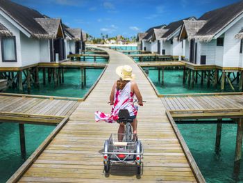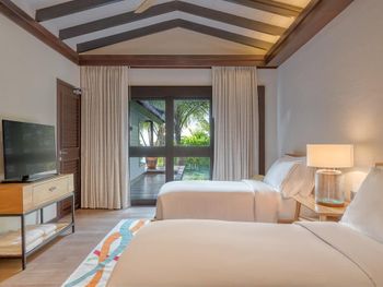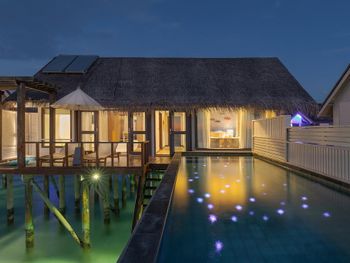 Удобно добираться от Мале - 45 минут до отеля на катере, что значительно экономит силы и время. Хороший подход к воде по всему острову, дно в месте захода - в основном песок, кораллов и камней очень мало. Сторона острова с виллами без бассейна оказалось существенно лучше (менее ветряная, погода в целом кажется лучше), чем сторона с виллами с бассейнами (ветрено и выход из виллы / подход к воде размывает волнами, когда ветрено; при этом дольше солнечно и красивый вид на закат). Хороший сервис, очевидно стараются (например, и на завтраках еду частично приносят официанты после заказа на стойке приготовления). На всем острове тариф «все включено» - это удобно: не спрашивают номер комнаты, не нужно расписываться, наливают напитки от души. Неплохой спортзал.