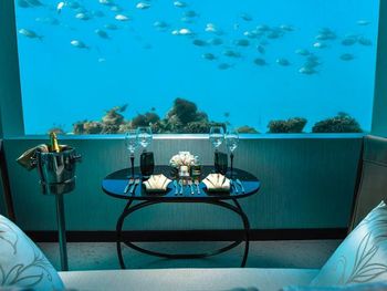 В отеле имеется круглосуточная стойка регистрации, общий лаундж, парикмахерская и сувенирный магазин. Гости могут заказать различные напитки, включая вино, спиртные напитки, шампанское и многое другое. В подводном ресторане изысканной кухни M6m можно отведать современные блюда из морепродуктов и полюбоваться местной морской флорой и фауной. Кроме того, гостям предлагают дегустационное меню и вина.