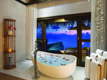 Отель нам очень понравился! Это был наш 5 раз на Мальдивах, мы остались довольны. Жили на пляжной вилле с бассейном! Номер просторный, хотя немного и староват. Есть все необходимое. Мин бар пополняют ежедневно, в том числе шампанским и вином! очень хорошая уборка для Мальдив. Отдельно хочу отметить качество еды. Это 1 из главных плюсов отеля! очень вкусно, разнообразно, огромное количество фруктов, свежевыжатый сок делают при тебе из чего пожелаешь. Был очень красивый ужин в честь Хеллоуина. Качество алкоголя на высшем уровне, французское шампанское, выбор вина прекрасный. детям очень понравился подводный ресторан, куча впечатлений! китайский тоже оказался вкусным. Массаж сделали великолепно! Но главный плюс этого отеля, его персонал. отдельно хочу поблагодарить нашего батлера Baari. Он выполнял все наши пожелания, лучший батлер, что я встречала. однозначно рекомендую этот отель!