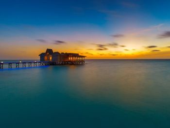 Отель очень понравился. Мы первый раз на Мальдивах, взяли - все включено. Нас встретили и отвели в бизнес зал, дальше на скоростной катере трансфер на остров (45 минут), показали остров, выделили персонального батлера (кстати, русско-говорящий). На территории отеля 3 ресторана (Пекинский ресторан, Индо-цейлонский, "М6м" (подводный на глубине 6 метров) и ежедневный ресторан "Тhe palm"! Нам предложили ласты и трубку на все время нашего пребывания в отеле! Море бирюзовое как и ожидалось, если с одной стороны было течение, то с другой стороны острова было все отлично! Мини бар всегда полон и был включен в стоимость. Воды питьевой в номере хватало, так же в номере имелся чайник и кофемашина. Плавая около виллы видели морскую черепаху и ската! Акул видели, когда обедали в подводном ресторане. Номера прекрасные, еда вкусная. У нас было включено несколько поездок на лодке на снорклинг, встреча заката на лодке - посмотреть дельфинов, а также обратный трансфер и нас провели по фасттреку сразу в аэропорт!!!