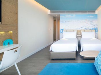 Очень спорное расположение. Рядом кроме торгового центра ничего толком нет. Пляж ужасный. Завтраки очень однообразные и 70% блюд включают свинину. Бассейн и горки небезопасны для детей, никто не регулируют детскую горку, вроде есть спасатель, который ни за что не отвечает.
