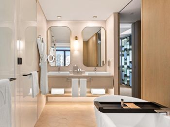 В номерах Palace Dubai Creek Harbour установлен кондиционер, сейф и телевизор с плоским экраном. Среди прочих удобств — письменный стол, чайник и мини-бар, а также собственная ванная комната с душем. В собственной ванной комнате есть ванна, фен и тапочки. Гостям Palace Dubai Creek Harbour предоставляются постельное белье и полотенца.
