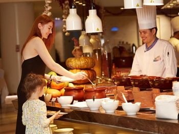 В курортном спа-отеле Palace Yalong Bay Sanya работает первый в бухте Ялунвань ресторан с морской тематикой, в аквариуме которого обитают более 4 000 рыб около 30 разновидностей. Для гостей сервируют завтрак «шведский стол» со специальными блюдами китайской и западной кухни, которые подает сам шеф-повар. В ресторане Qiongzhong Xiaochu готовят традиционные блюда местной кухни. Гости могут посещать лаундж в лобби и бар на территории.