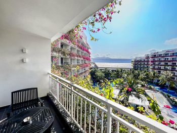 Когда переселили в номер с видом на бассейн, на южную сторону - стало тихо и даже загорали на балконе на солнышке.