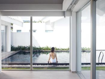 Вид из туалета при открытых окнах был на бассейн)