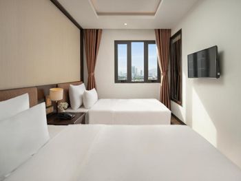 Отличное расположение отеля, 5 минут пешком до чистого пляжа My Khe. Вокруг куча вкусных ресторанов и кафе, но при этом немного дальше от центра пляжа, так что людей не очень много. Хорошие разнообразные завтраки, очень милый и дружелюбный персонал. Хорошая кровать и душ с хорошим напором и горячей водой.