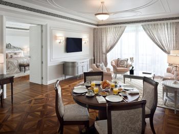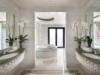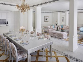 Очень не уютны отель. Дизайн от Версаче- спорная вещь, но по моему не очень. В номере невозможно отрегулировать кондиционер (хотя просили не раз) , а он всегда был +15С - в результате простуда... Ужастная организация всего.... Взяли (по скидке) люкс - наобещали много всего - и батлера и быстрый чекаут и лаундж и тд. В результате - на все один ответ - коавид, ничего не работает. Персонал - заторможенный (реально очень отрешенный) - можно что то объяснять минут 10, затем услышать - ковид, а далее на выбор : не работает или нельзя заказать /сделать и тд... Завтраки - убогие, и организовано все так, что ты не комфортно себя чувствуешь - как выпрашиваешь еду.... Встали из за стола за соком (из пакета только) , пока ходили - все убрали, несмотря на то, что на столе были сумка и телефоны)) Заказали кофе -его не несут, уже уходим- спрашиваем- где кофе? он не моргнув глазом взял с соседнего стола остывшую чашку - вот оно))) Рестораны/бары - 20 мин ждать официанта - нормальное дело. Заселение - долго, быстрый чек-аут вылился в 20 мин перекладывания бумажек и после этого ожидание чемоданов в машине в течение 30!!! мин. Хорошо, что стартовали в аэропорт с запасом. Еще смешно: позвонили -сказали , что пора выселяться - мы Ок, через 30 мин забирайте чемоданы и мы будем готовы (хотя могли бы и не торопить , тк время еще было). Пока я поднимался в лифте - мне заблокировали карту от номера, а без нее лифт не едет. Я сидел в лифте и ждал попутчика...., но это скорее смешно, тк это было единственное , что отель сделал быстро.