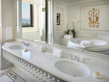 Уважаемые гости! Номер 321 - отвратительно прокурен, как в самых дешевых гостиницах СНГ. Я не стала его менять, так как мне его уже полностью украсили и набрали ванну с пеной. Вид на залив в нем - одно название (низко). Отлично видно только крышу итальянского ресторана внизу.