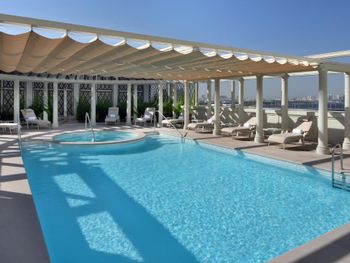 Три открытых бассейна декорированы мозаикой и окружены садом с пальмами и цветами. Этот роскошный отель с красивым ландшафтным садом и панорамным видом на городской пейзаж и район Дубай-Крик идеально подходит для проведения свадеб и различных мероприятий в Дубае.