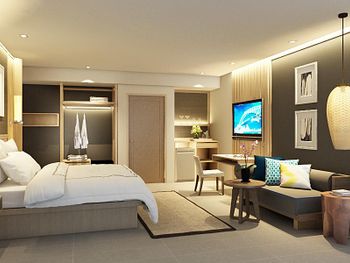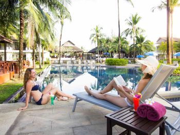 Все номера и люксы курортного отеля Palm Galleria, расположенного в таиландском городе Као-Лаке, выполнены в современном тайском стиле и украшены тайскими тканями ярких цветов и художественными работами. С собственных балконов всех номеров открывается великолепный вид на океан, лагуну или сад.