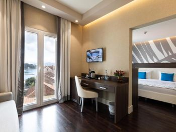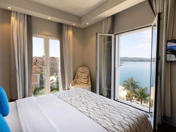 Выбор этого отеля моя самая большая ошибка на Booking! Сервис просто на 0 с минусом! Заселили в номер 13,5 кв м включая санузел (я даже измерила рулеткой в телефоне), при том что анонсировано 18 кв м при бронировании. Я всегда обращаю внимание на размер номера что б потом не удивляться. В санузле с трудом можеn развернуться один человек. Постоянно пахнет канализацией. Время ожидания официанта в ресторане и заказа превзойдет все Ваши самые негативные ожидания настолько что обед становится ужином! При том что вкусного ничего так и не было. К счастью мы приезжали заниматься яхтингом и были достаточно заняты что б через два дня попыток перешли на пользование отелем только в режиме bad&brakfast, была арендованная в Подгорице машина и много отличных заведений вокруг, включая соседний отель La Roche. Единственная просьба с которой мы обратились к персоналу отеля в первый завтрак была принести платный кофе из бара потому что на завтраке растворимый на что мужу моему сказали идти в бар самому и нести себе кофе. При выезде муж попытался поговорить на ресепшине в стиле "все у вас в принципе неплохо, но вот растворимый кофе на завтраке это как-то совсем...." на что был отправлен писать отзыв :)))) в общем им еще и все равно :)
