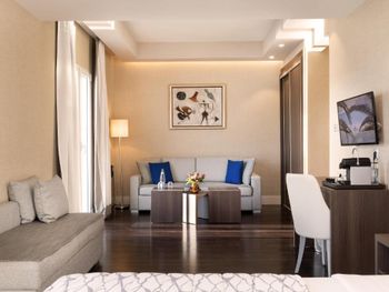 Отель новый, чистый, красивый номер! Есть свой пляж, что очень понравилось! Далеко Ни у каждого отеля есть свой пляж, поэтому здесь огромный плюс! До порта можно спокойно прогуляться пешком! И нет никаких строек рядом!