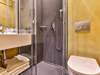 Запах канализации из ванной комнаты, можно спать только с открытым окном. В улучшенном номере нет ни чайника, ни кофемашины. Очень маленькая душевая кабина.