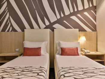 Номера маленькие, дешевая мебель, в ванной дешевая плитка, маленькая душевая. Кровати маленькие, подушки не удобные. Завтрак для меня был не вкусным, все в масле, отдельно хочу выделить, отвратительный, дешевый, растворимый кофе из кофемашин- для меня это высший уровень жадности и экономии, для такой цены что я заплатил за номер это ужасно!