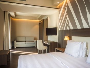 Отель новый, чистый, красивый номер! Есть свой пляж, что очень понравилось! Далеко Ни у каждого отеля есть свой пляж, поэтому здесь огромный плюс! До порта можно спокойно прогуляться пешком! И нет никаких строек рядом!