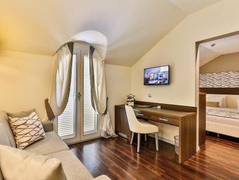 Выбор этого отеля моя самая большая ошибка на Booking! Сервис просто на 0 с минусом! Заселили в номер 13,5 кв м включая санузел (я даже измерила рулеткой в телефоне), при том что анонсировано 18 кв м при бронировании. Я всегда обращаю внимание на размер номера что б потом не удивляться. В санузле с трудом можеn развернуться один человек. Постоянно пахнет канализацией. Время ожидания официанта в ресторане и заказа превзойдет все Ваши самые негативные ожидания настолько что обед становится ужином! При том что вкусного ничего так и не было. К счастью мы приезжали заниматься яхтингом и были достаточно заняты что б через два дня попыток перешли на пользование отелем только в режиме bad&brakfast, была арендованная в Подгорице машина и много отличных заведений вокруг, включая соседний отель La Roche. Единственная просьба с которой мы обратились к персоналу отеля в первый завтрак была принести платный кофе из бара потому что на завтраке растворимый на что мужу моему сказали идти в бар самому и нести себе кофе. При выезде муж попытался поговорить на ресепшине в стиле "все у вас в принципе неплохо, но вот растворимый кофе на завтраке это как-то совсем...." на что был отправлен писать отзыв :)))) в общем им еще и все равно :)