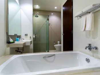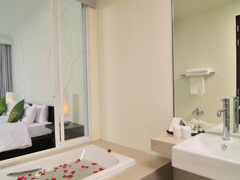 Дружелюбный и улыбчивый персонал, большая уютная комната с выходом в бассейн- это пожалуй самое классное! Есть трансфер до пляжей Ката и Корона. При заселении был день рождения у мужа, персонал его поздравил, очень приятно!) Кровать огромная, можно вчетвером вообще спать! ) в ванной комнате есть окно в спальню во всю стену, при желании можно штору закрыть или открыть, но вот с закрытой темно как-то становится, но это ерунда. Завтрак нормальный, вафельки огонь! Дочь в бассейне частенько плескалась и плюс в том,что можно прямо из номера следить,если что- пару шагов и уже рядом с ней. Так же можно прямо в номер заказывать еду- для ленивых/ уставших) есть трансфер. Есть душ и ванна.