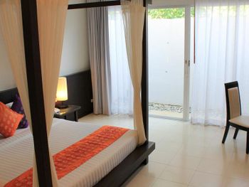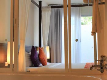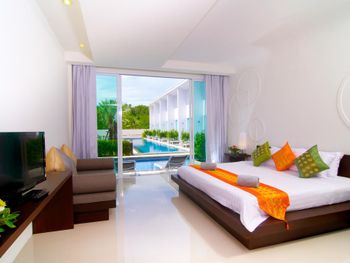 Комната с выходом к бассейну, большая, просторная, потолки высокие. Но все старенькое. Кондиционер встроенный - очень шумный, матрас - деревяшка, уборка очень посредственная. Бассейн чистый