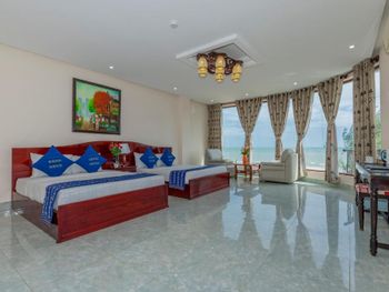 Отличное месторасположение отеля, заселили в хороший номер, с видом на море с террасы, но обидно, что изначально заселили в номер с хорошим видом на море, а потом переселили ссылаясь на то, что номер был забронирован. Завтраки были вкусные, небольшой выбор, но нам всего хватало, особенно были вкусные блинчики и пельмени, из фруктов был драгонфрут, папайя, арбуз и ананас, а также яичница, омлет и варят фо бо. Пляж хороший, но городской, его не убирали. Персонал улыбчивый, территория была чистая. В общем отель за свою цену супер, уборка была каждый день, воду, кофе, чай оставляли каждый день. За ранее заселение мы заплатили 500 000 донгов (приехали в 5:00 утра), сообщили нам об этом только утром при оплате за полное проживание, но это нормально, как нам показалось, у них все прописано в прайсе. Также поломался у нас ключ, через 10 минут после обращения на ресепшен пришел мастер и поменял сердцевину. Отель рекомендуем, нам очень понравилось!!!