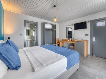 Не было горячей воды. Нам не сообщили, что нужно было отдельно открыть горячий кран в стене. Вся мебель и все приборы, в виде фена, чайника, пульта от телевизора и тумбочек были грязные и жирные. После фена отмывала руку с мылом. По всей видимости отель довольно старый и частично отремонтированы. Старые пластиковые окна и дверь на балконе не закрывалась до конца. От чего постоянно задувало с моря и стоял свист от ветра. До 00:30 играла музыка в соседнем отеле и невозможно было уснуть,поскольку звукоизоляция никакая. Сам по сете отель очень стильный и с виду все очень красиво, но как только приближаешься ближе к уличной мебели видишь, что все очень грязное и не ухоженное. Возможно к сезону все приготовят и почистят, но в марте месяце было грязно.