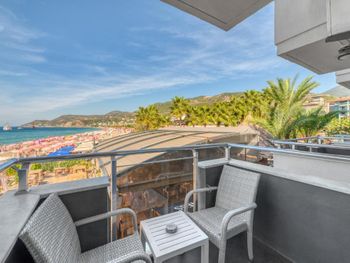 из номера прямо на пляж (один из лучших в Алании), лежаки, зонтики, напитки. Номера немного подуставшие, завтраки +\\- стандартные (если оставаться в отеле более пары дней то надоест). В целом хороший вариант, что бы потюленить несколько дней на пляже.