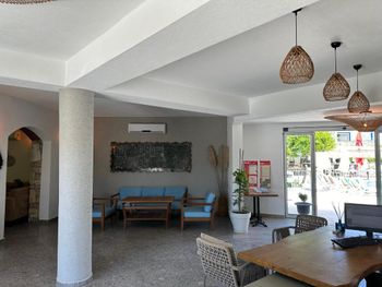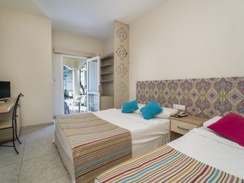 Ооочень чистый отель с ооочень приятным персоналом и ооочень вкусной едой. За эту цену это идеальный вариант. До пляжа два шага, пляж от отеля напротив, можно пользоваться шезлонгами. Если выйти на пляж, то направо пошла променадная дорожка с кучей симпатичных кафешек. Машину можно без проблем припарковать напротив отеля. Есть два бара, мороженко в определенное время, снэк, кроме обеда, поздний завтрак. Еда меняется и каждый день можно что-то новенькое найти. Вкусно все, большое спасибо поварам. И всей администрации спасибо за то, что в отеле чисто везде, даже в туалете возле бара. Ставлю 10 из 10.