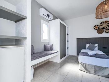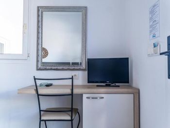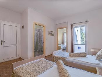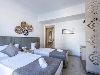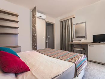 Скудное меню (мало рыбы и мяса). В номерах пора освежить ремонт. Интернет плохо ловит в номерах. На лежаках возле бассейна постоянно (даже ночью) лежат полотенца. Отсутствие нормального пляжа с песком. На пляже много мусора (особенно окурков) и больших собак. Возле пляжа дорога и много яхт. Приходилось ходить на другой пляж (общественный) в 10 минутах от отеля.