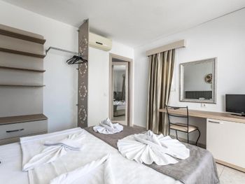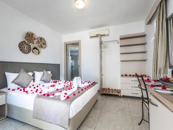 Отдыхали семьей с 14 по 23 июня. Это действительно семейный отель для тихого и спокойного отдыха. Кто ищет веселых и шумных вечеринок с аниматорами и дискотеками - вам не сюда точно! :) Учитывая вечерний прилет, не знание местных реалий и не имея местных денег, было принято решение попросить трансфер с аэропорта в отель. Списался по этому вопросу с менеджром отеля Гаей. Стоимость этой услуги 200 лир (23$ США), которые внес на следующий день , когда обменял деньги на местные. Встретили и довезли до отеля с комфортом, за что отдельная благодарность. На регистрации в отеле нас встретили очень радушно. Особо хочу отметить Олсана, который занимался нашим оформлением и размещением и на протяжении всего отдыха оказывал нам необходимую помощь по любым вопросам. Спасибо большое. В отношении обслуживающего персонала хочется сказать только добрые слова, ребята молодые, коммуникабельные, приветливые, с юмором (наигранности не увидел, искренне готовые сделать отдых запоминающимся и приятным). Отдельное спасибо Озгуру, который всегда старался нас получше накормить и поднять настроение. К сожалению, не познакомился лично с другими ребятами и девушкой на баре, но хочу отметить, что все большие молодцы!!! В столовой, на баре, да и на всей территории всегда поддерживалась исключительная чистота и порядок. До этого отдыхали в отелях класса Премиум. Но с удовольствием приехали бы еще в этот отель однозначно! Еще раз спасибо за приятный отдых.