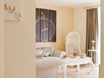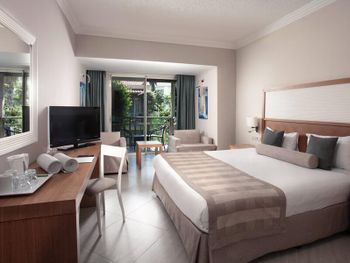 Номера оформлены в строгом стиле и располагают ванной комнатой с феном, гостиным уголком и спутниковым телевидением. Из всех номеров открывается вид на сад или Средиземное море.