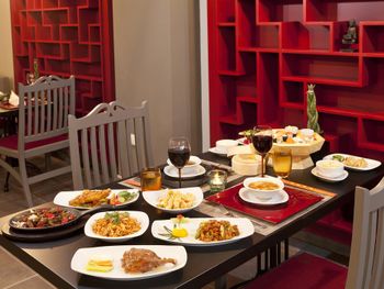 В ресторане Ada с обслуживанием по меню подают блюда из свежих морепродуктов. Ресторан располагает открытой пляжной террасой. Блюда турецкой и османской кухни можно попробовать в ресторане Safran.