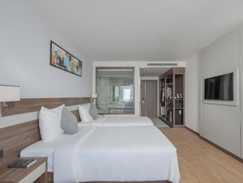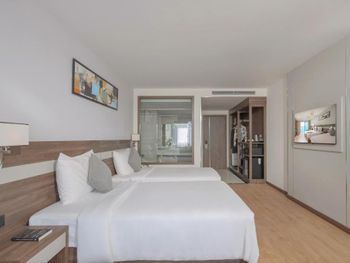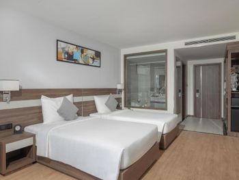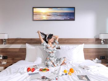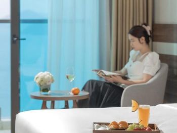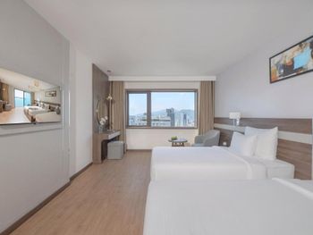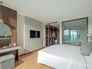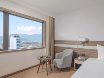 Отличный отель, идеальное расположение, все рядом есть, и рестораны, и пляж, и салоны. До ТЦ 15 минут идти. Персонал очень отзывчивый и приветливый, перед ранними экскурсиями ланч боксы с завтраком готовили. Пляжные полотенца выдавали по запросу, хранение вещей тоже было доступно. У отеля своих лежаков нет, но можно подойти на пляж и за 150к снять 2 лежака под зонтиком на весь день у местных ребят, там и бар пляжный есть рядом. Уборка каждый день, меняют полотенца и заправляют постель. Всегда была водичка в номере. Работала прачечная, 75к/кг. На следующий день все красиво сложенное возвращали. Завтраки хорошие, можно найти и для европейцев сытный завтрак. Китайцев конечно много, но особо не мешает. В любое время завтрака все можно найти. Вид с окна шикарный, у нас был с видом на горы, это восторг. Интерьер приятный, уже слегка потрёпанный, но это Азия, логично) Кондиционер дует в ноги, очень комфортно, не продувает. На 30 этаже есть бассейн, там же работает бар, с адекватным ценником. Из за высоты очень сильный ветер, надо вещи в шкафчик складывать. Полотенца так же выдают там же) вид оттуда прекрасный! Персонал говорит на английском, на достойном уровне, не было каких то с этим проблем. В общем, несмотря на некоторые недочёты ниже, рекомендую! Снимали на 10 ночей, остались очень довольны. Цена/качество отличное.