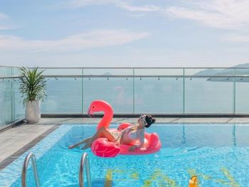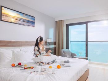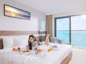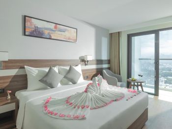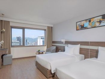 Пробыли неделю. Повезло с балконом, у него был боковой вид и 19 этаж- шикарный вид на город! Отель ориентирован на корейцев. Завтрак - вьетнамская кухня с корейским уклоном. Невкусный кофе - единственный минус. Брали на улице рядом. Кровать 2,4 метра (две составленные кровати), жесткая. Современный телевизор с ютубом. Минус отсутствие лежаков на пляже. В большинстве отелей предоставляют.