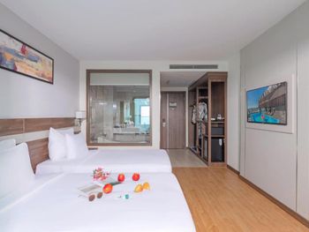 Номер бронировали на 10 ночей. Заплатили около 30 тыс. Рублей. Номер большой, панорамное окно на город. Очень красивый вид из окна. Видно горы.Интерьер современный. Чисто. Нет никаких муравьев. Есть балкон. Еда очень вкусная и разнообразная. При выезде, отель вызвал такси до аэропорта по выгодной цене и подарили презент - два шелковых нашейных платочка .