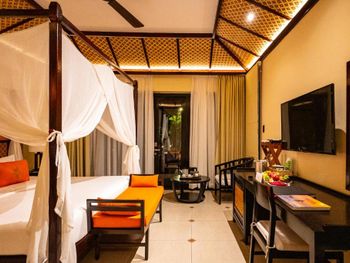 Adorned in pleasant cream shade with splashes of yellow, light brown and black, all units at Pandanus Resort enjoy free WiFi access and air conditioning. A wardrobe with personal safe, cable flat-screen TV and minibar are included. Certain units feature either a private terrace or balcony with outdoor furniture and offer views of the garden. En suite bathroom comes with a walk-in shower and free toiletries.