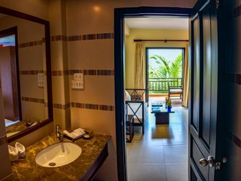 У нас сложились двоякие чувства об этом отеле. Из отрицательного - ужасный массаж. Одной рукой мастер массировала, другой болтала. Один раз сходили, потом ездили в город. Транспорт в город ходит только по вечерам и надо бронировать заранее, что не располагает к отдыху. На завтраке вокруг полно персонала, стоят болтают друг с другом. И самое неприятное - чудовищное пищевое отравление после одного из «барбекю-вечеров». На рецепции после Check out пытались стоимость трансфера 2 раза пропихнуть. Но не прокатило. Ещё осторожно с обменом денег на рецепции, округлеют суммы не в пользу клиента (мелочь, но осадок остался). Стоимость room service - суп на вынос дешевле чем заказ в номер (нигде такого на курортах не встречала).