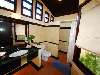 Цены в ресторане отеля сильно завышены. Отель находится далеко от центра, трансфер в город только по вечерам, это не всегда удобно, приходилось пользоваться такси(около 120-140тыс донгов). При заселении берут депозит (100-150$), при отъезде возвращают.