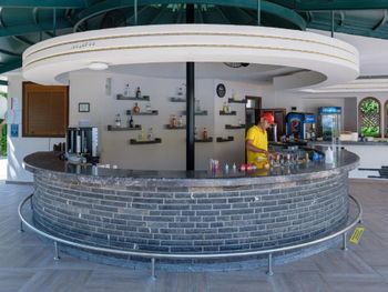 В ресторане отеля сервируется ужин «шведский стол» со свежими фруктами и выпечкой. Также на территории работает мини-маркет и киоск, где продаются турецкие лепешки. В баре с панорамным видом на море можно заказать коктейли.