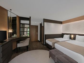 В БАССЕЙН ЛЬЮТ ХЛОРКИ НЕМЕРЕНО. Все вещи ребенка просто выцвели, это ужас какой-то....!!! Кепка из зеленой превратилась в серую. Рядом ничего нет. Имейте ввиду. До ближайшего ТЦ Форса Молл (одно название,делать нечего там) идти минут 30, мы даже не рискнули. Арендовали машину на 2 дня в Circular за 100 евро примерно, мотались 2 раза в ТЦ в Анталию, в Белек не успели,жаль(( Таксисты ломят цены, до Анталия молл в одну сторону - 50 долларов, офигеть просто! Печаль без Убера :((( В номере ничего нельзя из еды оставлять, бегают мелкие муравьи,брр. Пару раз кондиционер сам по себе менял градусы, потом просто затупил и не работал, в итоге в отеле вырубали свет, видимо чтобы перезагрузить систему,после этого заработало. Переплатили за "вид на море", на самом деле вдалеке был краешек моря, но это вообще стремно (( не надо такие номера называть с видом на море!!! Знали бы не переплачивали. С видом на море только номера Люкс, я так поняла они двухкомнатные,остальные с ограниченным видом, все закрывается деревьями...:(( Даже с 3 этажа до поздней ночи долбит музыка и шум с дискотеки, так что с открытым балконом спать невозможно. Бесит,что приходишь искупаться в бассейн и покататься на горках и некуда даже кинуть полотенце! Людей почти нет,зато все лежаки типа "заняты" вещами и полотенцами. Хоть и пишут, что резервировать таким образом нельзя - всем пофигу !:(( Сок яблочный из коробки вкусный, а апельсин разводят каким-то порошком (сама видела). Не пейте его..