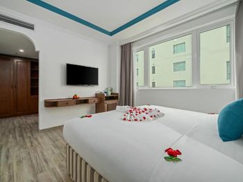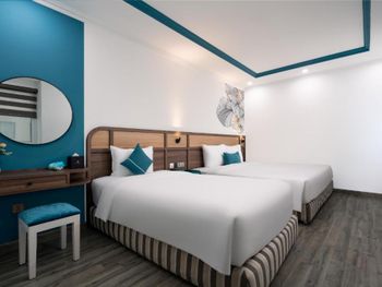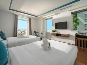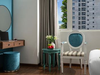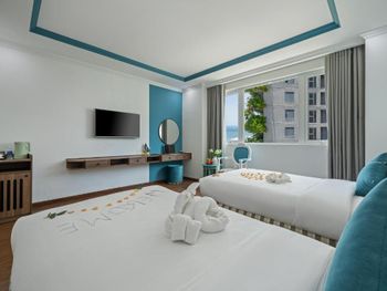 Отель на первой линии - люди приезжают ради моря, неплохо бы было иметь сушилку на балконе, а не сушить вещи на чемоданах. В ванной не было крюквов под полотенца, только одна полка-штанга. Ванная сделана не удачно - если в ней мытся стоя, то вся вода с бортов течет на пол. В шкафу было всего 6 плечиков и то одни поломанные. Сейф ряд с цифрами 369 не работает. В отеле много Вьетнамцев, они оооочень шумные. Так что если хотите поесть в тишине - спускайтесь на завтрак ближе к 09.00. Но всё это терпимые мелочи, отель хороший, рекомендуем! ?