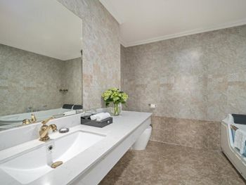 В ванной комнате в номере 1401 после купания сильно мокрый пол . Со всех сторон течёт. Правда ресепшен отправил ремонтника он сказал что это не кран у них не правильно сделана ванна и все стекает на пол. Предложили побольше полотенца для ног. Шкаф воняет он из дерева и видимо после других клиентов у которых есть специфический запах он остался. И кондиционер капал , нам объяснили что нельзя держать открытую дверь на Болконском из за этого. Завтрак ужасный. Я разочаровалась. Рядом есть отели 4 звезд за эту цену супер д. Короче этому отелю надо делать ремонт . Не рекомендую его он не соответствует своей цене.