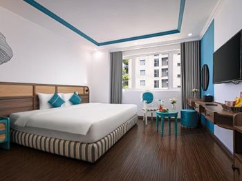 - удобное расположение: через дорогу, буквально в 5 минутах пляж, до центрального пляжа и моста дракона, ночного рынка пешком 15-20 минут - Рядом улица с ресторанами, магазинами, прачечной - Сам отель красивый, выдержан везде элегантный стиль. Номера неуставшие, большие и удобные кровати, кондиционер, сейф, чайник, комплиментарно каждый день вода, чай, кофе - Уборка и замена полотенец каждый день или по запросу - Разнообразный завтрак шведский стол - всегда в наличии суп фо бо, яйца, рис, лапша, свежие фрукты и овощи, выпечка и др. Но преобладает больше вьетнамская кухня , а не европескся - Очень доброжелательный коллектив, добрые, отзывчивые, готовы прийти на помощь по любому вопросу. Помогли нам заказать тур на Бана хилл - Есть бассейн и небольшой спорт зал, но в бассейне ни разу не были