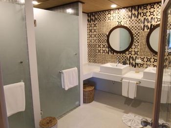 Я вообще никогда не придираюсь к завтраку и прекрасно знаю, чего ожидать. Но тут уж совсем скудный завтрак для отеля 4 звезды! Большое количество ненужных сладких плюшек, элементарное отсутствие бекона/сосисок/ветчины, даже в рисе практически нет овощей, совсем пресный, ну и отсутствие разнообразия. Поверьте, есть с чем сравнивать. В номере плохое водоснабжение, отстутствие напора (первый этаж), вода текла тонкой струйкой, что очень неудобно, особенно, когда 4-м нужно помыться. Персонал довольно быстро реагировал на устранение данной проблемы, но буквально сутки и все начиналось по-новой. Отсутствие пляжной линии, вход в море практически с лестницы, что не очень удобно с маленькими детьми. Наличие машины или мотобайка обязательно - отель расположен далеко от кафе/ресторанов/магазинов и развлечений (массажные салоны, бары, экскурсии).