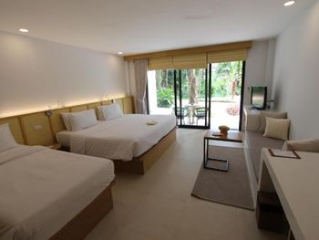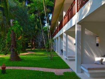 Это отличные 4 звезды! Очень красивая территория, много кустов, цветов, деревьев. Возможно поэтому не слышны другие отдыхающие, при том, что отель заполнен полностью))) Вкусная еда в ресторане, мы пару раз ходили за территорией, а так все в местном обедали и ужинали. Чистый бассейн, точнее два бассейна, удобно, у всех получается рядом с номером есть бассейн. Вход в море нормальный (песок, есть лесенки - пригождаются когда прилив), волн в марте почти не было, только когда дождь. Отель скорее для взрослых, любящих тишину и покой, детской анимации не замечено. Маенам - это отдаленный тихий пляж, тут нет особо магазинов, народу, дискотек, шума и всего такого. Советую всем, кто хочет вроде и рядом с цивилизацией, а вроде и в тишине. Рядом есть классный ресторан, где живут кошки! И еще там поблизости пасутся быки, можно сделать классные фотки. Так же в пешей доступности есть пункт стирки, 7элевен, местные сладости и фрукты. Мы жили в домиках, тех, которые постарее, но зато побольше. Из минусов этих домиков - они сделаны на два номера, очень слышно соседей по стенке, но нам повезло - почти все время никто не жил по соседству. Из плюсов - они большие, по сравнению со всеми остальными номерами. Очень большая ванная комната! Кондиционеры - норм, справлялись!
