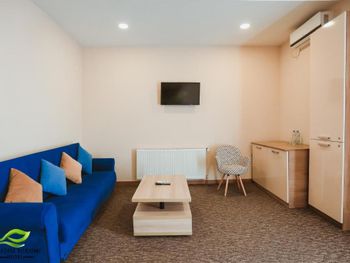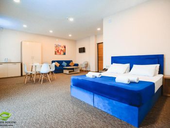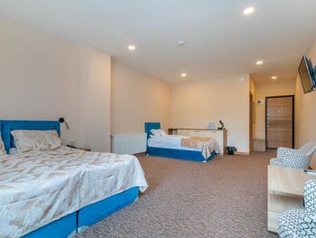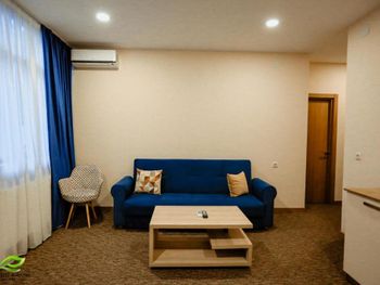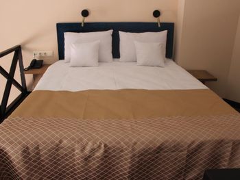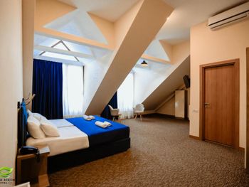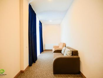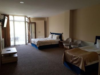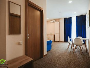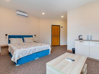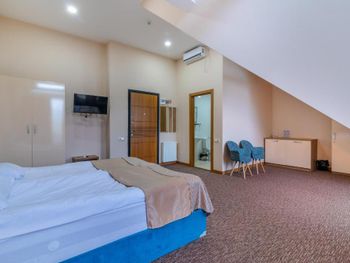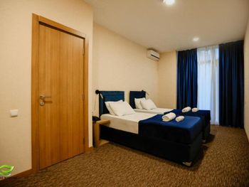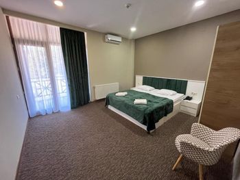 Отель удачно расположен в начале улицы к источнику. Не шумный и всегда были места для парковки. Номер огромный, есть балкон. Кровать удобная. Номер вполне чистый. На завтрак всегда была вкусная каша и в целом завтркаи хорошие. В номере есть чайник и холодильник.