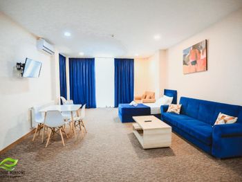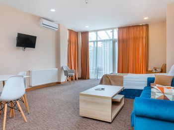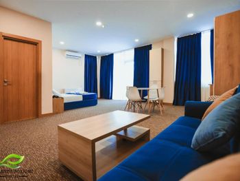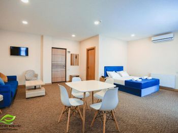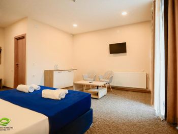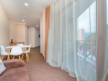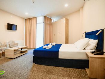 Площадь номера превзошла ожидания, семьей с двумя детьми было очень комфортно. Большой санузел, жаль только, что как водится в Грузии в душе не было шторки и во-первых это холодно, а во-вторых мокро.. Зачем так делать я все никак не пойму. В номере 2,5 балкона, диваны, кресла и даже уголок под холодильник и чайник. В номере была вода на всех 4ых, что приятно, но три стакана) Было тихо, завтрак очень простой, но все наелись и даже была каша для детей и яблоки. Месторасположения отличное, есть небольшая парковка перед зданием отеля и можно пешком дойти по всей исторической части в парк.