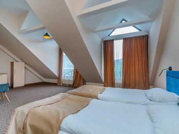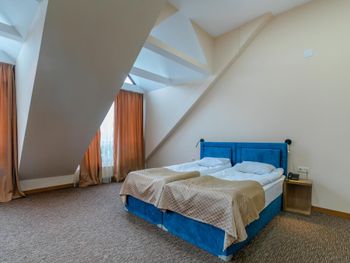 Номер мансардный был выделен, хотя я когда бронировал в Booking были номера обычные. Подниматься до 5 этажа на лифте на мансардный этаж на лестнице. Окна номера полностью не закрываются шторами, рано утром свет падает в глаза. В ванной комнате две шт гель для душа и все. В номере кроме пару бутылок воды, электрочайника и пару стакан нет ни заварки, ни кофе. Цена и комфорт не соответствует. Вешалок в шкафу нет, телевизор от пульта не включается. Завтрак не ахти.