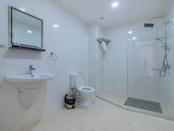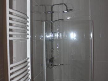 Было прохладно в ванной комнате, не работал полотенцесушитель, вода немного вытекала из душевой кабинки